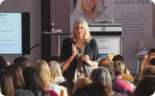 Marisa Peer, founder of Rapid Transformational Therapy® (RTT®), is a world-renowned therapist, motivational speaker, and best-selling author. She has been named “Best British Therapist” by Men’s Health magazine and featured in Tatler’s guide to ‘Britain’s 250 Best Doctors.’